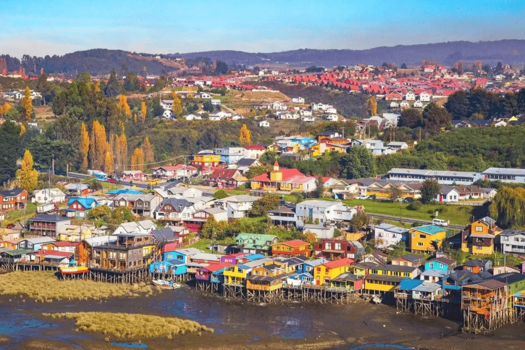 这个花生形状的岛屿位于巴塔哥尼亚海岸附近,距离圣地亚哥以南 1100 公里(683 英里),以其长满苔藓的雨林、历史悠久的教堂和未受破坏的海滩吸引着外国人。然而,如果你问一个智利人为什么来这里,他们很可能会对这里的文化、方言和审美赞不绝口,这些都与大陆不同,因为这里经历了几个世纪的历史隔离。